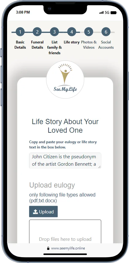 - Simply upload all of your loved one’s happiest memories and life story to the eTribute page and click publish.