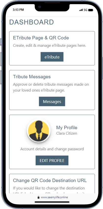 - Once you receive the QR code medallion in the mail it will already be linked to your See My Life account and eTribute page.